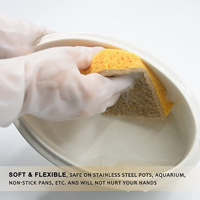 Genießen Sie müheloses Schrubben, ohne sich Sorgen zu machen, dass Ihre zarten Töpfe und Pfannen beschädigt werden. Sogar seine schäbige Seite ist garantiert sanft und nicht kratzend.