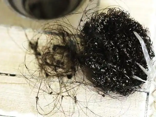 Wie wäre es mit der Wirkung unseres selbst gemachten "Blockage Prevention Artefact"? Wir können uns den tatsächlichen Testerffekt im Bild unten ansehen. Ist es nicht sehr offensichtlich? Viele Haare wurden in den Stahlwolle gewickelt und es ist auch sehr einfach zu reinigen. Auch wenn wir es wegwerfen, werden wir es nicht tun.